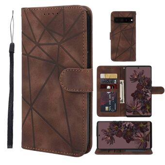 Για το Google Pixel 6 Pro Skin Feel Γεωμετρικές γραμμές δερμάτινη θήκη τηλεφώνου (καφέ)