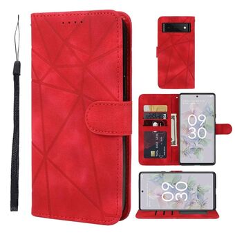 Για το Google Pixel 6a Skin Feel Γεωμετρικές γραμμές δερμάτινη θήκη τηλεφώνου (κόκκινο)