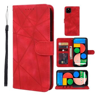 Για το Google Pixel 5a Skin Feel Γεωμετρικές γραμμές δερμάτινη θήκη τηλεφώνου (κόκκινο)