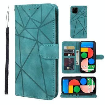 Για το Google Pixel 5a Skin Feel Γεωμετρικές γραμμές δερμάτινη θήκη τηλεφώνου (πράσινο)