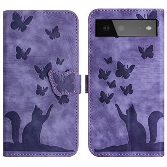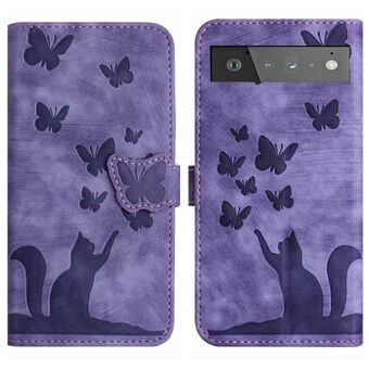For Google Pixel 6 Butterfly Cat Embossing Flip Leather Phone Case(Purple)