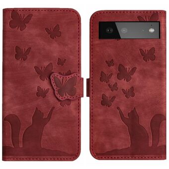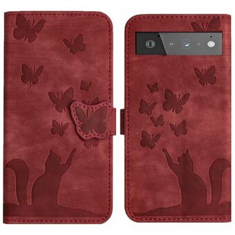 For Google Pixel 6 Butterfly Cat Embossing Flip Leather Phone Case(Red)
