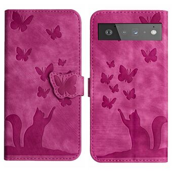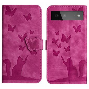 For Google Pixel 6 Butterfly Cat Embossing Flip Leather Phone Case(Pink)