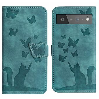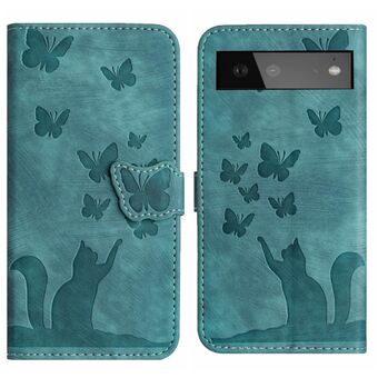 For Google Pixel 6 Butterfly Cat Embossing Flip Leather Phone Case(Wathet)