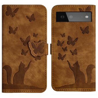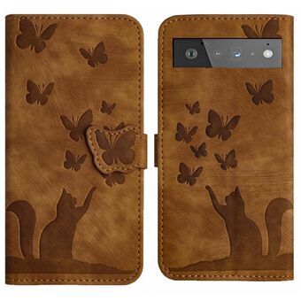 For Google Pixel 6 Butterfly Cat Embossing Flip Leather Phone Case(Brown)