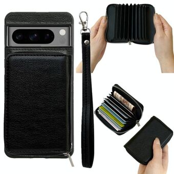 Για το Google Pixel 8 Pro Αμιγές χρώμα φερμουάρ 11-κάρτα Slots τσάντα υπόθεση τηλεφώνου με κορδόνι (μαύρο)