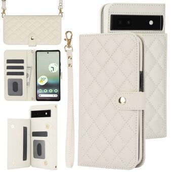 Για το Google Pixel 6a Crossbody Πολυλειτουργική θήκη τηλεφώνου από δέρμα (λευκό)