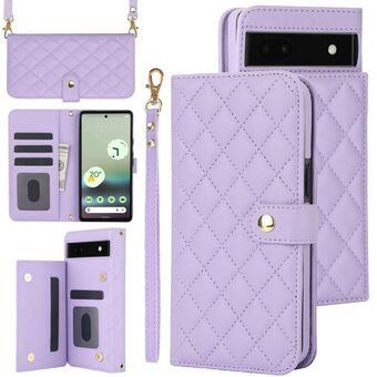 Για το Google Pixel 8 Crossbody Πολυλειτουργική θήκη τηλεφώνου από ρομβοειδές δέρμα (μωβ)