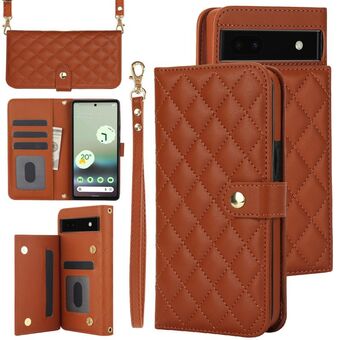 Για το Google Pixel 6a Crossbody Πολυλειτουργική θήκη τηλεφώνου από δέρμα σε σχήμα ρόμβου (καφέ)