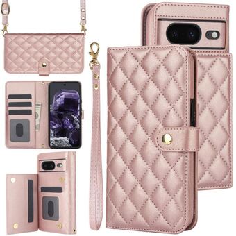 Για το Google Pixel 8 Crossbody Πολυλειτουργική θήκη τηλεφώνου από ρομβοειδές δέρμα (ροζ χρυσό)