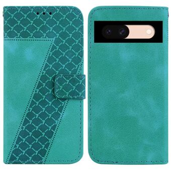Θήκη τηλεφώνου από δέρμα με ανάγλυφο σχέδιο σε σχήμα επτά για Google Pixel 8a (Πράσινο)