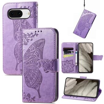 Θήκη τηλεφώνου από δέρμα με ανάγλυφο σχέδιο πεταλούδας και λουλουδιών για Google Pixel 8 (Μαύρο)