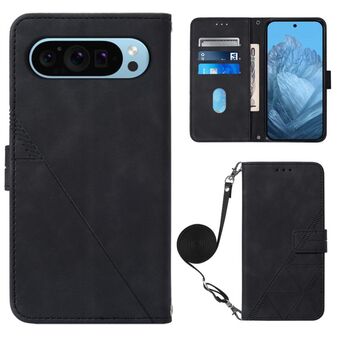 Για το Google Pixel 9 Pro Crossbody 3D ανάγλυφο Flip δέρμα τηλέφωνο υπόθεση (Μαύρο)
