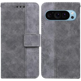 Για το Google Pixel 9 Pro 5G Γεωμετρική ανάγλυφη δερμάτινη θήκη τηλεφώνου (γκρι)