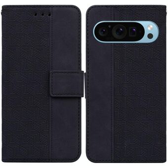 Για το Google Pixel 9 Γεωμετρική ανάγλυφη δερμάτινη θήκη τηλεφώνου (Μαύρο)