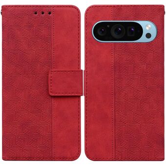 Για το Google Pixel 9 Pro 5G Γεωμετρική ανάγλυφη δερμάτινη θήκη τηλεφώνου (κόκκινο)