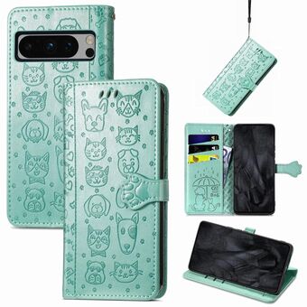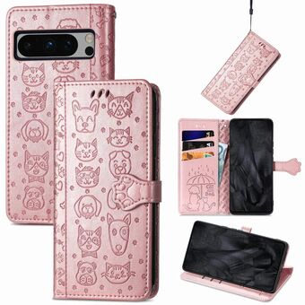 Θήκη τηλεφώνου από δέρμα με ανάγλυφα σχέδια χαριτωμένων γάτας και σκύλου για Google Pixel 8 Pro (Μπλε)