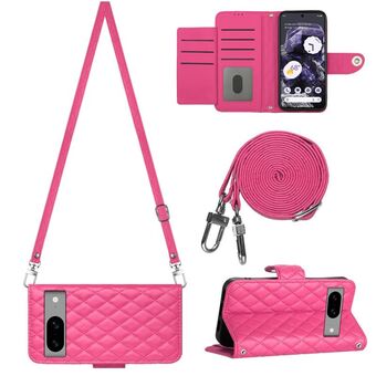 Για το Google Pixel 8a Rhombic Texture Flip δερμάτινη θήκη τηλεφώνου με μακρύ κορδόνι (ροζ)