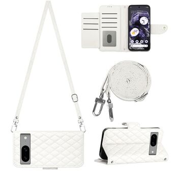 Για το Google Pixel 8a Rhombic Texture Flip δερμάτινη θήκη τηλεφώνου με μακρύ κορδόνι (λευκό)