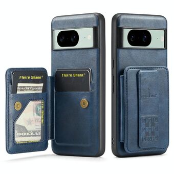 Για το Google Pixel 8a Fierre Shann Oil Wax Cow Leather Card Holder Back Phone Case (Blue) (FIERRE SHANN)
