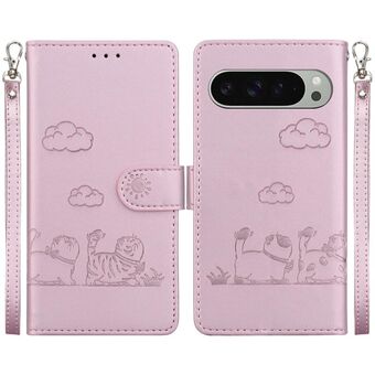For Google Pixel 9 / 9 Pro Cute Cats RFID Leather Phone Case(Rose Gold)