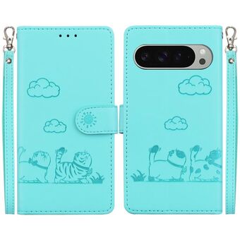 For Google Pixel 9 / 9 Pro Cute Cats RFID Leather Phone Case(Green)