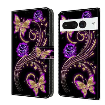 Θήκη κινητού τηλεφώνου από δέρμα, αντικραδασμική, προστατευτική 3D Crystal για Google Pixel 7 Pro (Ροζ πεταλούδα στο κάτω μέρος)