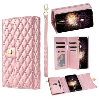 Για το Google Pixel 8 Pro φερμουάρ πορτοφόλι πολλαπλών καρτών ρομβοειδής δερμάτινη θήκη τηλεφώνου (ροζ χρυσό)