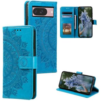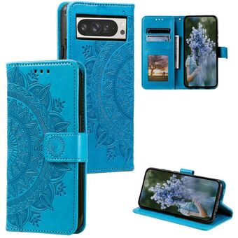 For Google Pixel 10 / 10 Pro Totem Flower Embossed Leather Phone Case with Lanyard(Blue)