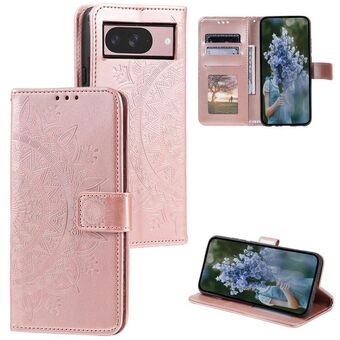 For Google Pixel 10 / 10 Pro Totem Flower Embossed Leather Phone Case with Lanyard(Rose Gold)