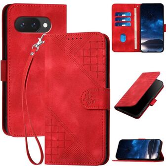 For Google Pixel 9a Grid Butterfly Embossed Pattern Leather Phone Case with Lanyard(Red)