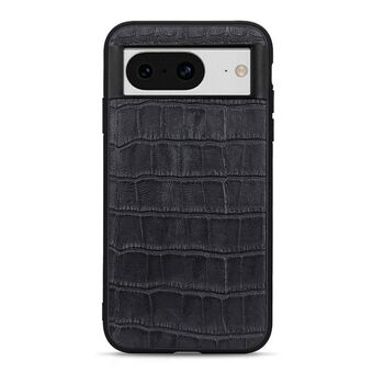Θήκη τηλεφώνου από γνήσιο δέρμα με υφή κροκόδειλου για Google Pixel 8 (Μαύρο)