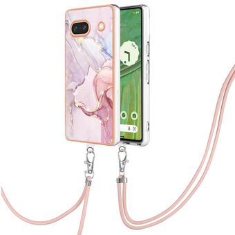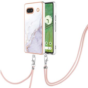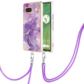 Θήκη τηλεφώνου για Google Pixel 7a με επιμετάλλωση, σχέδιο μάρμαρου, IMD διπλής όψης με κορδόνι (Μωβ 001)