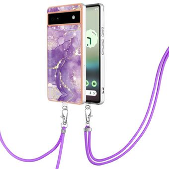 Θήκη τηλεφώνου για Google Pixel 6a με επιμετάλλωση, σχέδιο μάρμαρου, διπλής όψης IMD με κορδόνι (Μωβ 001)