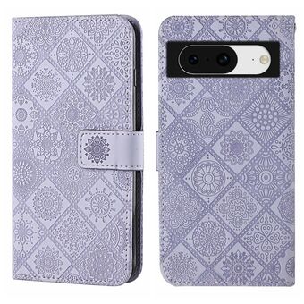 Για το Google Pixel 8 Ethnic Style ανάγλυφο μοτίβο δερμάτινη θήκη τηλεφώνου (μωβ)