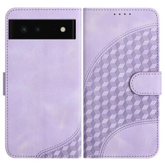 Θήκη δερμάτινη για Google Pixel 6 με ανάγλυφο σχέδιο ελέφαντα και κορδόνι (Ανοιχτό Μωβ)