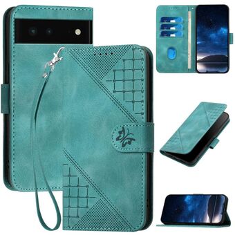 For Google Pixel 6 Grid Butterfly Embossed Pattern Leather Phone Case with Lanyard(Black)