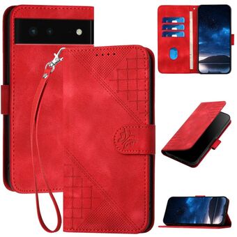 For Google Pixel 6 Grid Butterfly Embossed Pattern Leather Phone Case with Lanyard(Red)