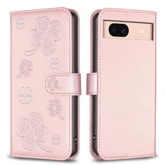 Για το Google Pixel 7a τετράφυλλο ανάγλυφη δερμάτινη θήκη τηλεφώνου (μωβ)