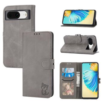 Για το Google Pixel 8 ανάγλυφο ευτυχισμένη γάτα μοτίβο Flip δέρμα υπόθεση τηλεφώνου (γκρι)