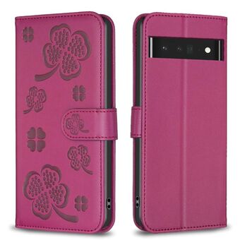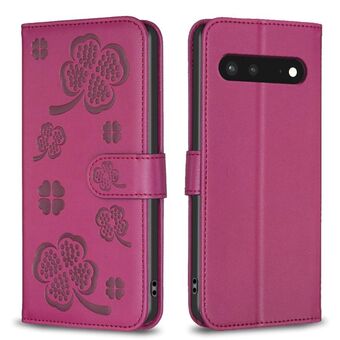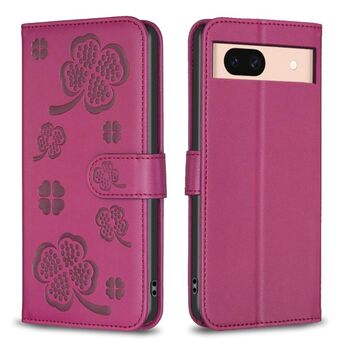 Για το Google Pixel 8a τετράφυλλο ανάγλυφη δερμάτινη θήκη τηλεφώνου (ροζ κόκκινο)