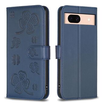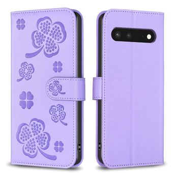 Για το Google Pixel 8a τετράφυλλο ανάγλυφη δερμάτινη θήκη τηλεφώνου (μωβ)