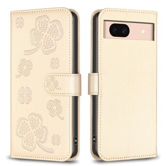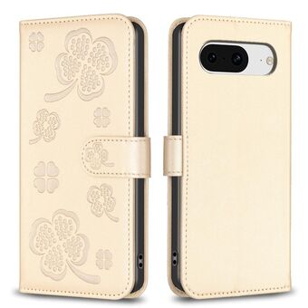 Για το Google Pixel 8 τετράφυλλο ανάγλυφη δερμάτινη θήκη τηλεφώνου (χρυσό)