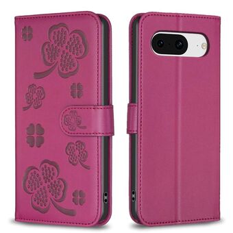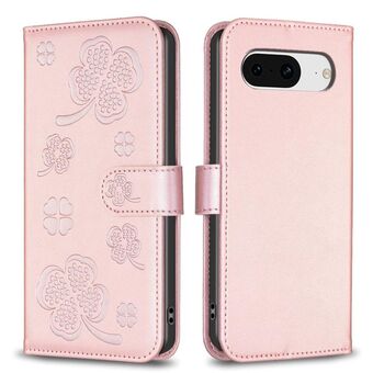 Για το Google Pixel 8 Θήκη τηλεφώνου από δέρμα με ανάγλυφο τετράφυλλο (ροζ)