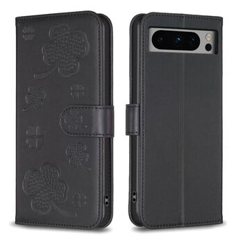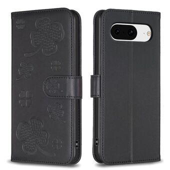 Για το Google Pixel 8 Four-leaf Embossed δερμάτινη θήκη τηλεφώνου (Μαύρο)