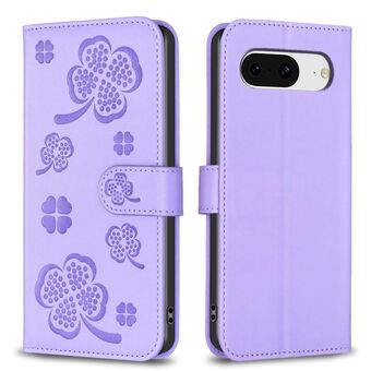 Για το Google Pixel 8 τετράφυλλο ανάγλυφη δερμάτινη θήκη τηλεφώνου (μωβ)