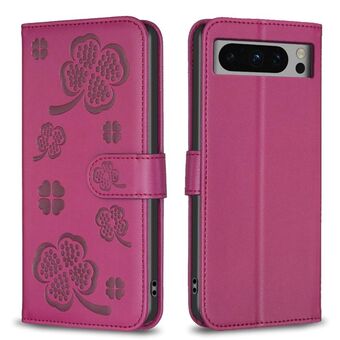 Για το Google Pixel 8 Pro τετράφυλλο ανάγλυφη δερμάτινη θήκη τηλεφώνου (ροζ κόκκινο)