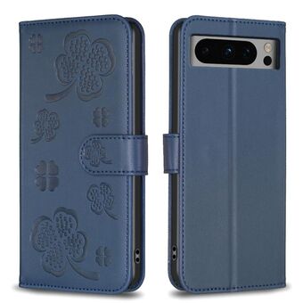 Για το Google Pixel 8 Pro τετράφυλλο ανάγλυφη δερμάτινη θήκη τηλεφώνου (μπλε)