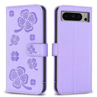 Για το Google Pixel 8 Pro τετράφυλλο ανάγλυφη δερμάτινη θήκη τηλεφώνου (μωβ)