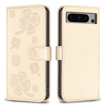 Για το Google Pixel 8 Pro τετράφυλλο ανάγλυφη δερμάτινη θήκη τηλεφώνου (χρυσό)